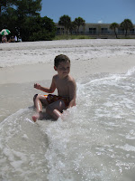 The beach was gorgeous and the water was like bath water. As soon as we arrived we saw two HUGE stingrays - at least 4' across - swimming near the shore. There were quite a few mommies on the beach on high alert because it was hard to tell for sure what they were (sharks?!) and they were swimming right toward a few snorkelers. It's hard to see them in the photo, but they're the two dark shadows just a few feet from the snorkeler. Right after I took the photo they seemed to realize that he was there and they sped off into deep water. There were also sea turtle nests on the beach which don't look like much right now but it's cool to imagine the baby turtles eventually digging their way out and heading for the water.When we were all thoroughly sunburned (even with sunscreen!), we went to Mom & Keith's for showers and lunch, and then we hit the road. Adlani had a complete nutty because he wanted to play a video game instead of taking a nap, but after squirting him with the spray bottle a few times to no avail, I used my secret weapon...Ladysmith Black Mambazo. Nobody can resist the soothing sounds of LBM...they're out like a light. We made it to the hotel around 8, Ben and the kids hit the pool, and then we had takeout from Ruby Tuesday which is conveniently located in the attached mall. We're at an Embassy Suites and it's definitely the best hotel we've stayed at so far.
